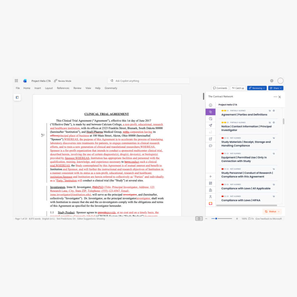 The Word Add-In brings the power of The Contract Network directly into Word—another way to experience the platform you already love. Whether you prefer reviewing agreements in your browser or in Word, your experience and data stay fully connected.